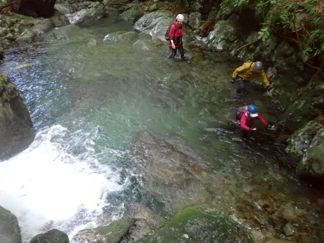 入渓してすぐが核心とのことでしたが水量がいつもより多いそうでスマイルさんの判断で巻いています。ここからしばらくはヒルがいました。