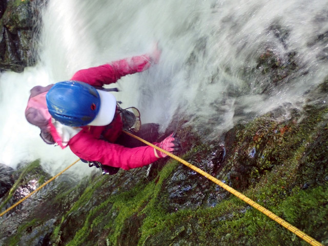 その際ふじ子さんとマカさんにアッセンダーの使い方を教えてもらいながらの登攀。
