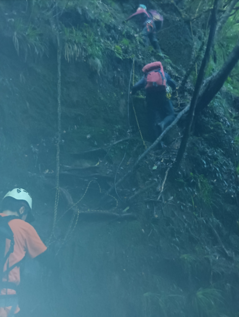続く14mの滝も下見を行ったのですが、こちらは難易度が高くムンターで降ろしてもらう前提で登った方が良いだろうとのことでした。