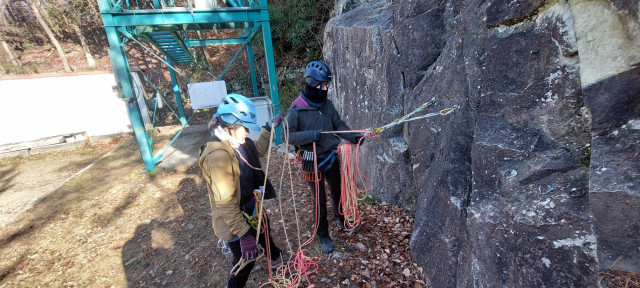 フリクションヒッチ、懸垂下降等のロープワークの復習