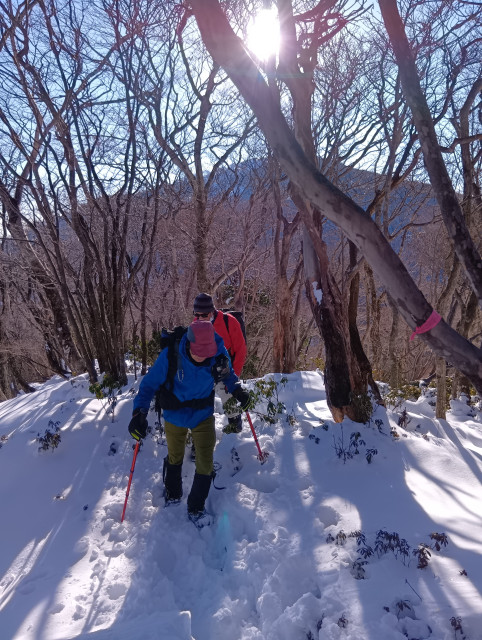 途中カタクリ峠でこの日唯一といっていい進路方向の変更点を、標識を読み間違って見過ごし、テラさんに指摘してもらうが、その直後に今度はスキーのトレースを登山者のトレースと間違え進路を誤り、これもテラさんに指摘してもらう。