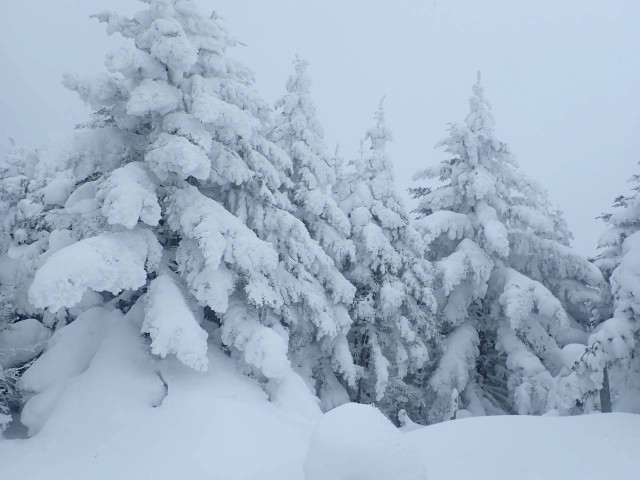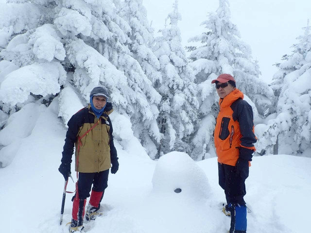 天候には余り恵まれませんでしたが霧氷、モンスターやパフパフの雪での滑りながらの下山を楽しむことができました。また、久しぶりにワカンワークすることができた充実した山行がでした。