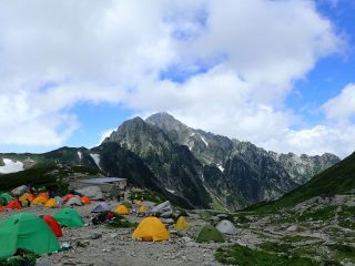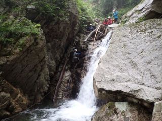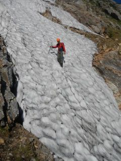 万物相での恒例の急斜面バーンをみたてたアイゼン歩...