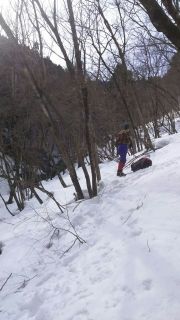 仙香谷出合7:43 ⇒ 赤坂谷出合Co617m10:15 ⇒ツメカリ谷への乗り越し入り口11:00 ⇒ツメカリ谷到着12:20 ⇒ツメカリ谷と神埼川本流出合13:30 ⇒ 取水堰堤上登山路入口14:30⇒取水口下林道15:30 ⇒通行止めゲート16:15