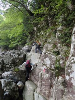 坊村(9:43発)~伊藤新道出合(10:27着、10:36発)~ワサビ谷~ワサビ大滝(11:42着)~白滝山北西尾根・標高870m付近(13:05)~ワサビ大滝(13:44)~伊藤新道出合(14:20)~坊村(15:07着)