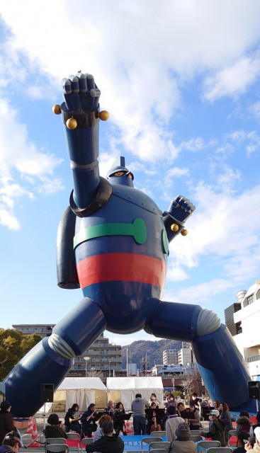 新長田駅前の鉄人広場にて、鉄人28号のモニュメントの下での演奏😃